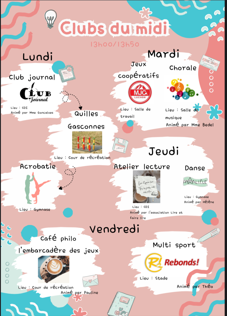 Dans le cadre du projet Coup de pouce prévention, les élèves ont la possibilité de participer à une activité chaque jour sur la pause méridienne. Cliquez pour en savoir plus.