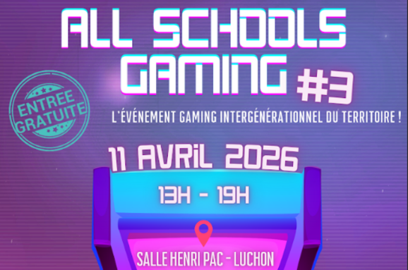 Evènement : ALL SCHOOLS GAMING le 11 avril de 13h à 19h Salle Henri Pac à Luchon