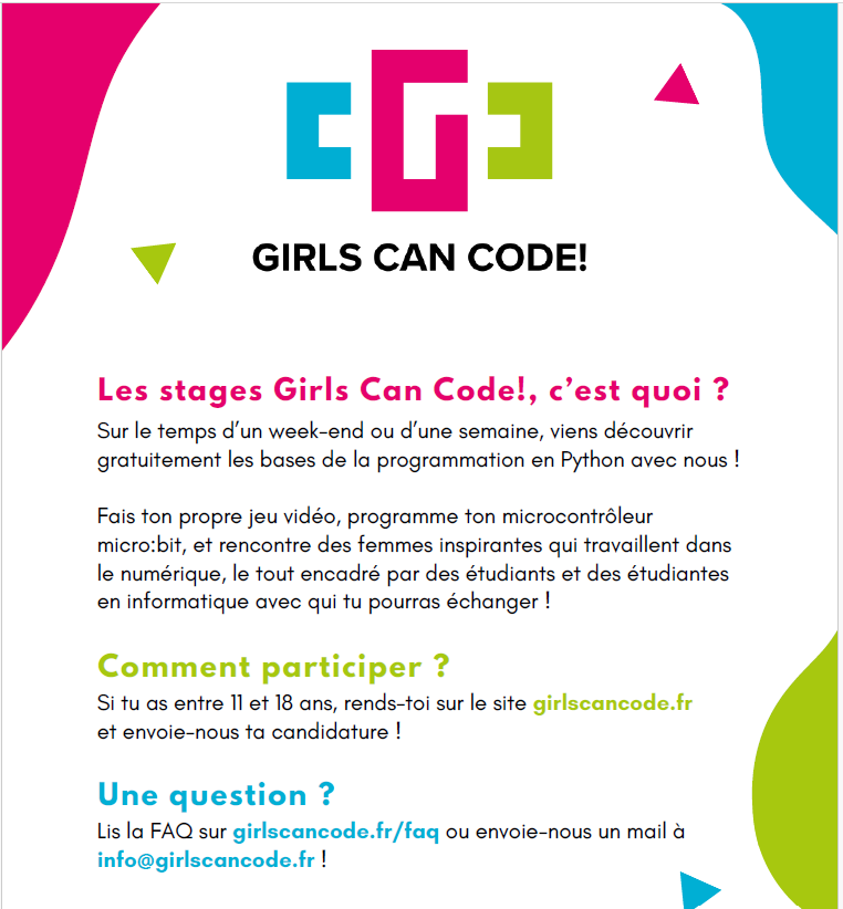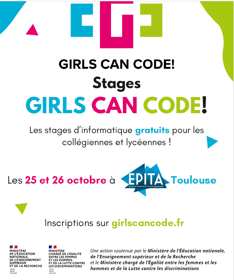 L’association PROLOGIN organise le stage « Girls Can Code ! » le week-end du 25-26 octobre prochain à l’EPITA Toulouse. Stage gratuit d'initiation à la programmation pour les collégiennes et lycéennes. Toutes les informations en cliquant sur le titre